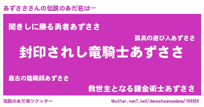 | ヒーロー風カッコイイあだ名 | 『スーパーアズササ』『ネオアズササ』 |