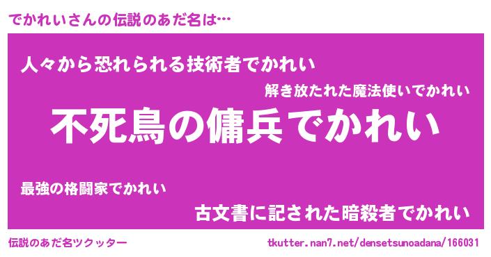 | 意味不明あだ名 | 『もやし科でかれい属』『自称でかれい』 |