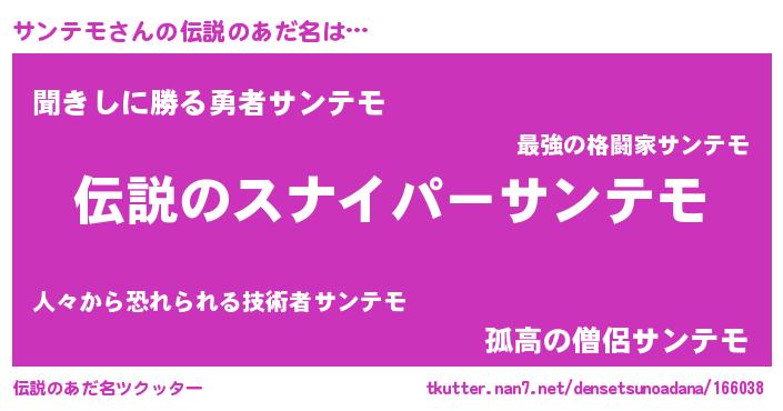 | 胡散臭い通販商品みたいなあだ名 | 『必ず成功する霊験あらたかなお札…その名も「サンテモ」』 |