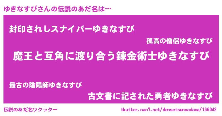 | 女子向けラノベタイトル風あだ名 | 『ゆきなすび恋絵巻』 |