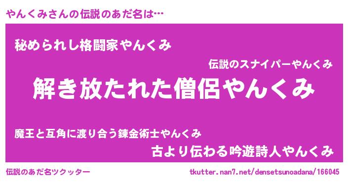 | 意味不明あだ名 | 『とにかく怪しいやんくみ』 |