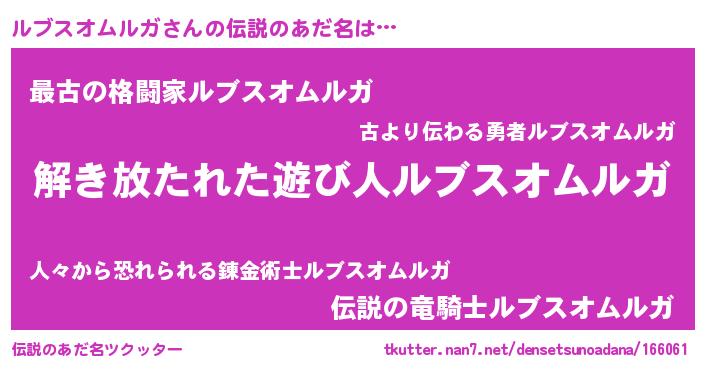 | ポケモン風あだ名 | 『ルブセウス』『ヒルブスオムルガ』 |