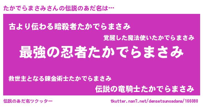 | 意味不明あだ名 | 『たかでらまさみフォーエバー』 |