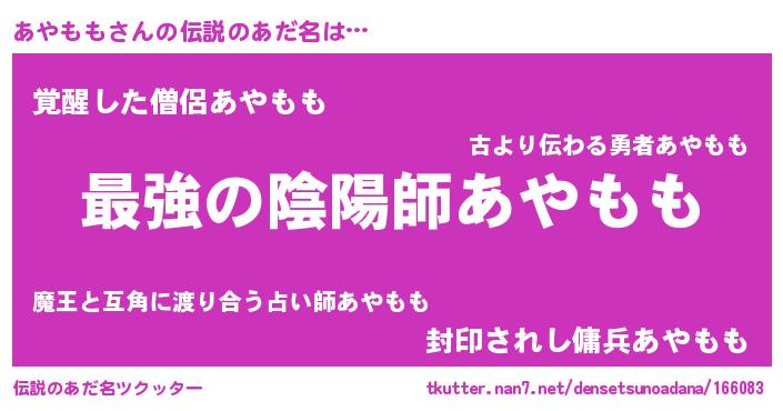 | ファンタジー風あだ名 | 『エターナルアヤモモー』『アヤフェル』 |