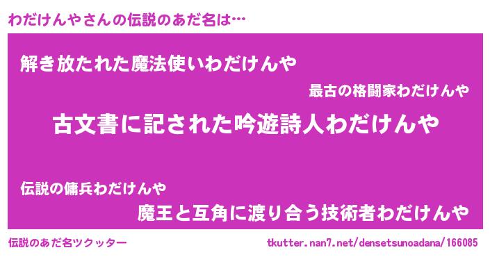 | 意味不明あだ名 | 『永久保存わだけんや』 |