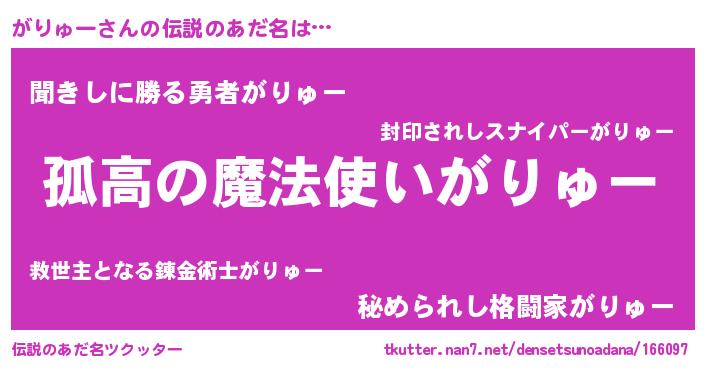 | ヒーロー風カッコイイあだ名 | 『暗黒騎士ガリ』『ネオガリュー』 |