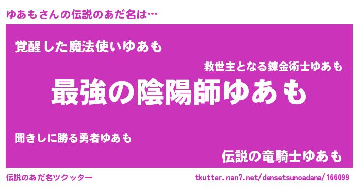 | 2回繰り返すあだ名 | 『ゆゆああ』『うずうず』『ゆあゆあ』 |