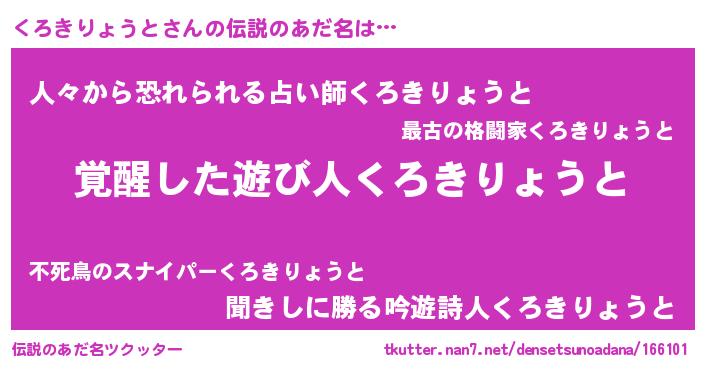 | 意味不明あだ名 | 『住所不定無職くろきりょうと(81歳)』 |