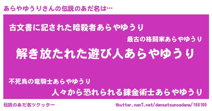 | 胡散臭い通販商品みたいなあだ名 | 『伝統あるペンダント…その名も「あらやゆうり」』 |