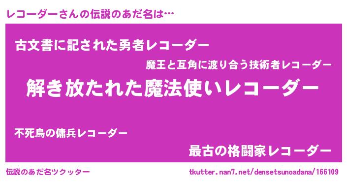 | ヒーロー風カッコイイあだ名 | 『幻影騎士レコ』『ネオレコーダー』 |