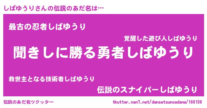 | 意味不明あだ名 | 『住所不定無職しばゆうり(77歳)』 |