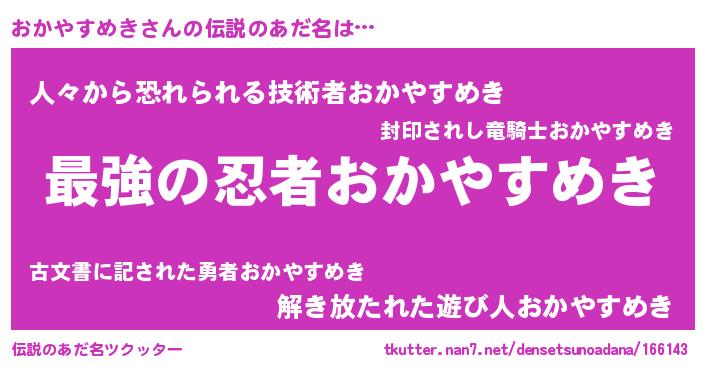 | ヒーロー風カッコイイあだ名 | 『ウルトラおかやすめきマン』 |