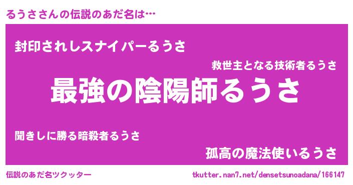 | 意味不明あだ名 | 『るうさフォーエバー』『自称るうさ』 |
