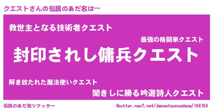ヘコむあだ名 | 『クエにゅー』『クエスト(笑)』 |