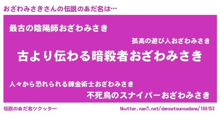 | 意味不明あだ名 | 『住所不定無職おざわみさき(14歳)』 |