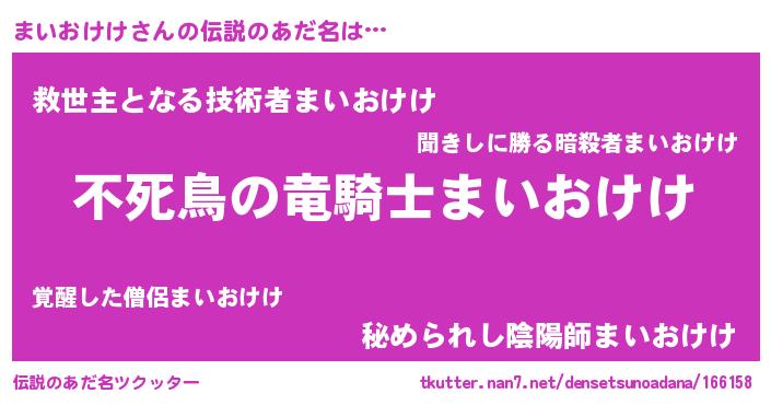 | 男性向けラノベタイトル風あだ名 | 『Re:まいおけけから始める異世界生活』 |