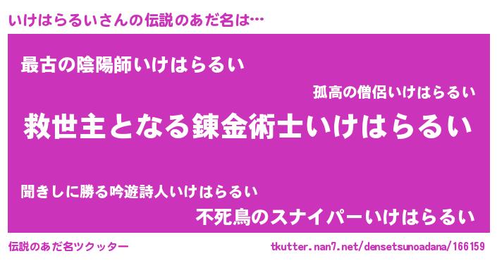 | 胡散臭い通販商品みたいなあだ名 | 『モンドセレクションを受賞した隕石のかけら…その名も「いけはらるい」』 |
