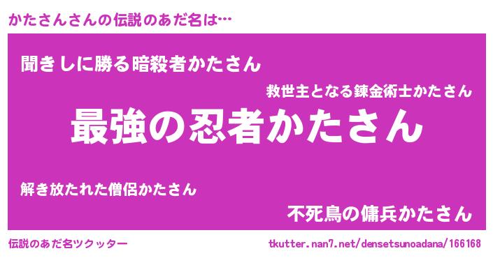 | ヒーロー風カッコイイあだ名 | 『仮面カタダー』『ウルトラかたさんマン』 |
