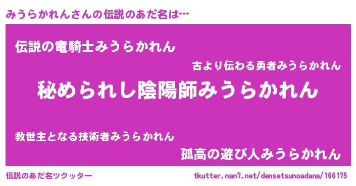 | 男性向けラノベタイトル風あだ名 | 『やはりみうらかれんの青春ラブコメはまちがっている 』 |