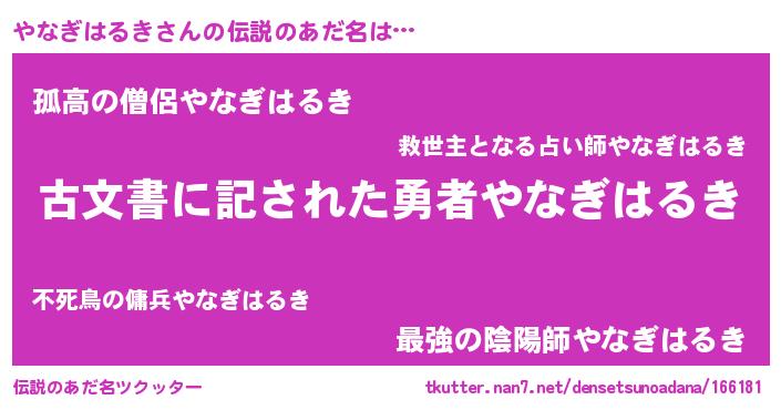 | 男性向けラノベタイトル風あだ名 | 『この素晴らしい世界にやなぎはるきを!』 |