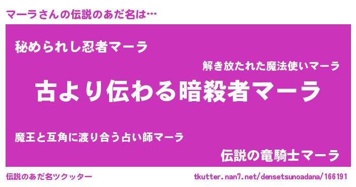 | ヘコむあだ名 | 『マーラ(笑)』『つくし』『マーお』 |