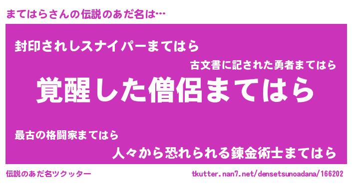| 女子向けラノベタイトル風あだ名 | 『まてはら様がみてる』『まてはら恋絵巻』 |