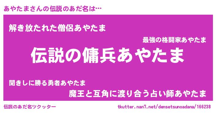 | 意味不明あだ名 | 『住所不定無職あやたま(39歳)』 |