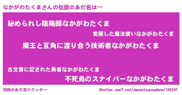 | 意味不明あだ名 | 『自称なかがわたくま』 |