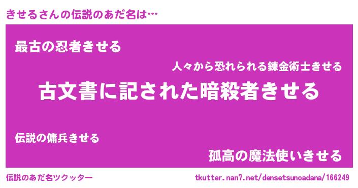| 胡散臭い通販商品みたいなあだ名 | 『前代未聞の健康食品…その名も「きせる」』 |