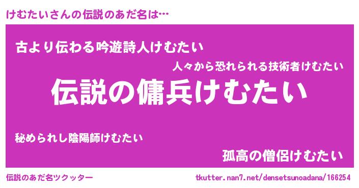| 男性向けラノベタイトル風あだ名 | 『けむたいの憂鬱』『魔弾の王とけむたい』 |