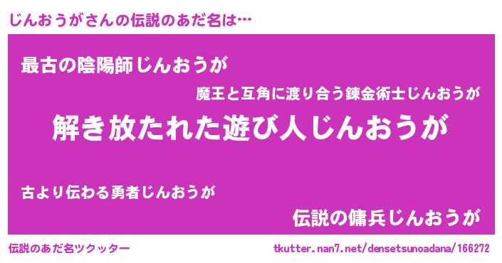 | 男性向けラノベタイトル風あだ名 | 『転生したらじんおうがだった件』 |