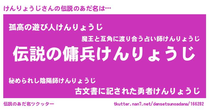 | ヒーロー風カッコイイあだ名 | 『スーパーケンリョウジ』『暗黒騎士ケン』 |