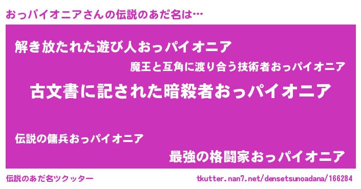 | 意味不明あだ名 | 『永久保存おっパイオニア』 |