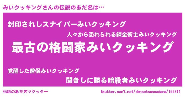 | ヒーロー風カッコイイあだ名 | 『仮面ミイダー』『ネオミイクッキング』 |