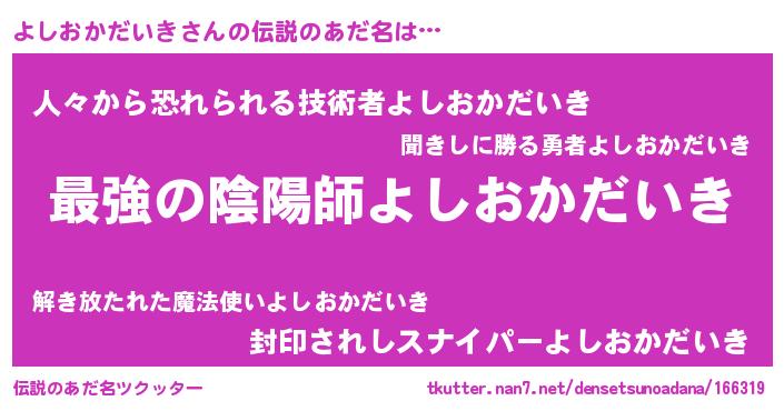| ファンタジー風あだ名 | 『エターナルヨシオカダイキー』 |