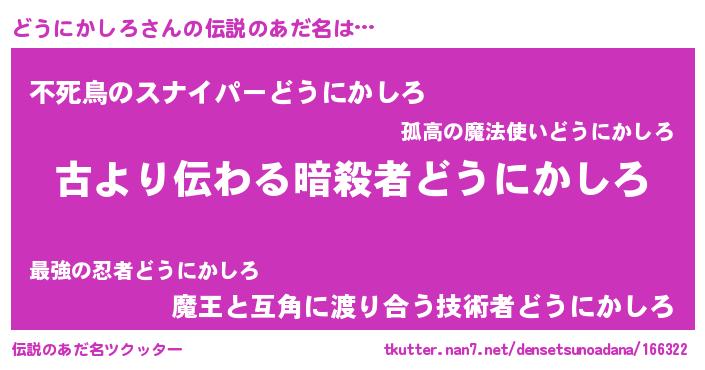 | ヒーロー風カッコイイあだ名 | 『ネオドウニカシロ』『魔戒騎士ドウ』 |