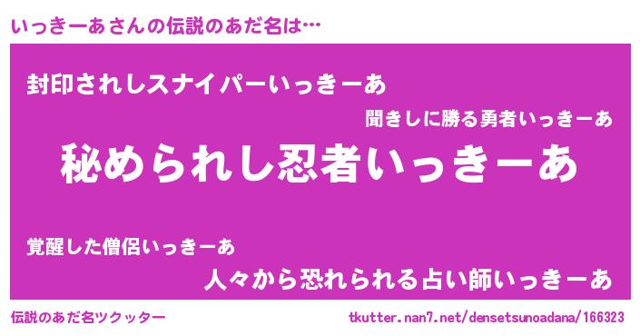 | 意味不明あだ名 | 『いっきーあフォーエバー』 |