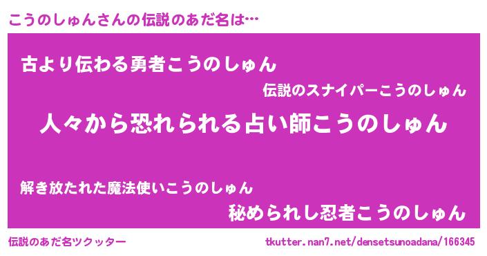 | ヒーロー風カッコイイあだ名 | 『正義の使者こうのしゅん』 |