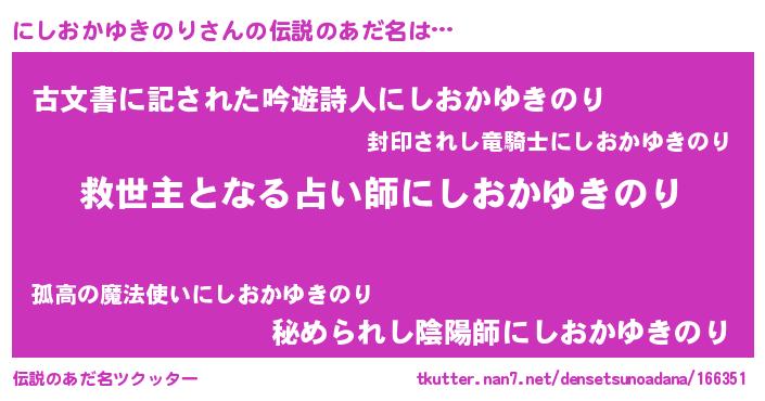 | ヘコむあだ名 | 『にしおかゆきのり(爆)』『レバニラ』 |