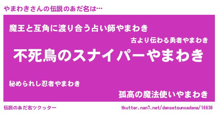 | ヒーロー風カッコイイあだ名 | 『サイバー戦士ヤマワキ』『銀牙騎士ヤマ』 |