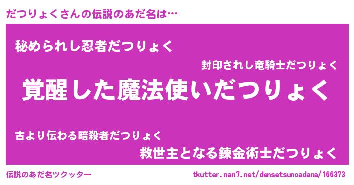 | 胡散臭い通販商品みたいなあだ名 | 『全米が絶賛したサプリメント…その名も「だつりょく」』 |