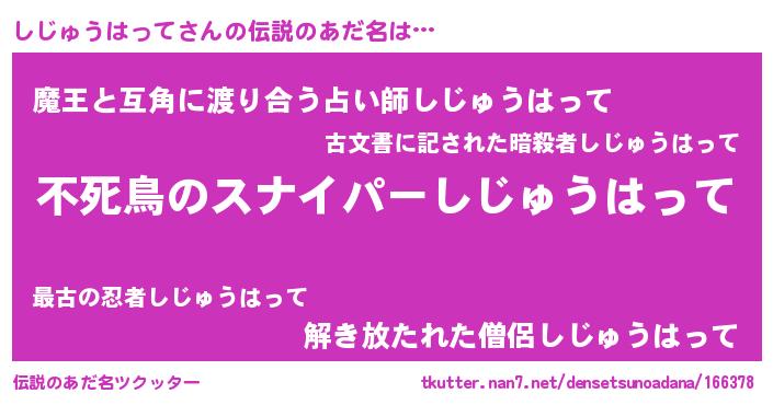 | 意味不明あだ名 | 『住所不定無職しじゅうはって(71歳)』 |