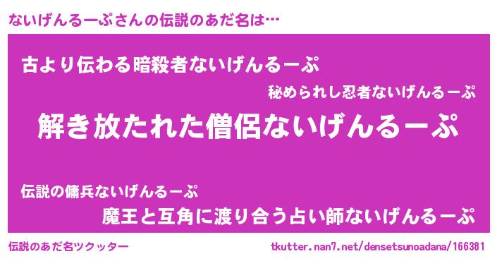 | ヒーロー風カッコイイあだ名 | 『仮面ナイダー』『銀牙騎士ナイ』 |
