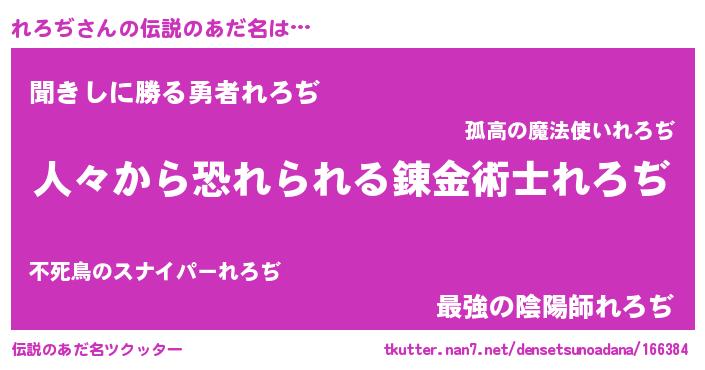 | 男性向けラノベタイトル風あだ名 | 『レロヂスレイヤー』 |