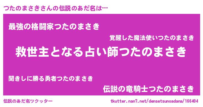 | 意味不明あだ名 | 『住所不定無職つたのまさき(41歳)』 |