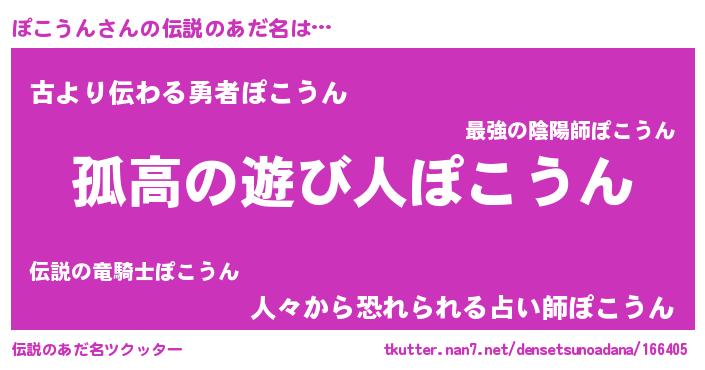 | 男性向けラノベタイトル風あだ名 | 『緋弾のポコウン』『ポコウンスレイヤー』 |