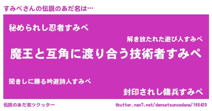 | ヒーロー風カッコイイあだ名 | 『愛の使者すみぺ』『仮面スミダー』 |