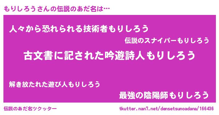 | ヘコむあだ名 | 『もりしろう(笑)』『牛乳』『もりを』 |