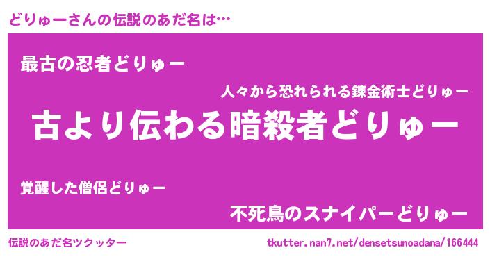 | ヘコむあだ名 | 『どりゅー(笑)』『なまこ酢』 |