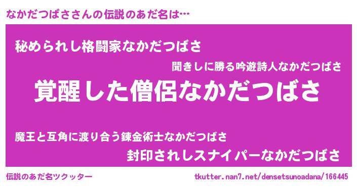 | 意味不明あだ名 | 『自称なかだつばさ』 |